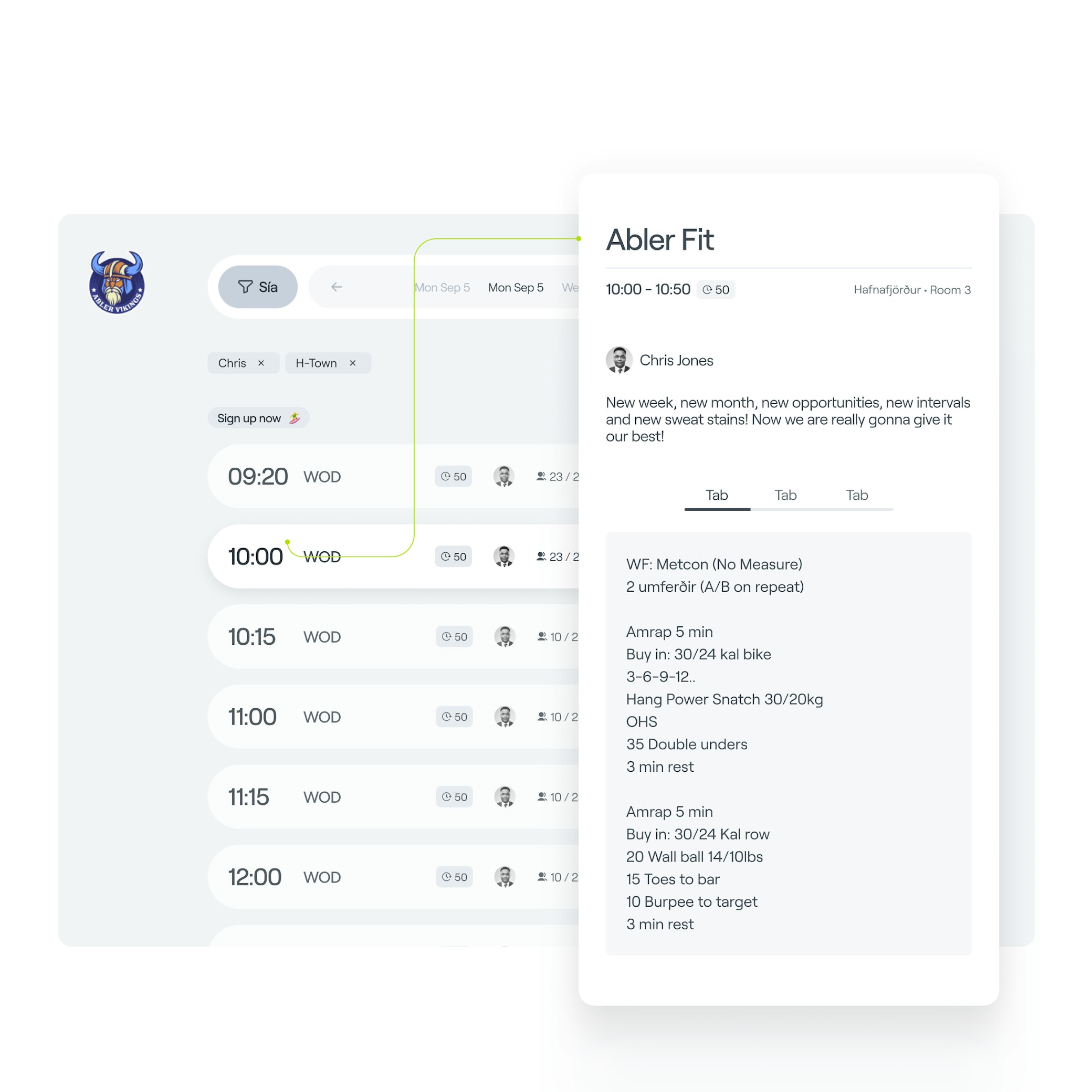 Mit Abler Kursplan können Sie das heutige Training ganz einfach mit allen Mitgliedern teilen. Trainer können den Trainingsplan direkt auf der Plattform anzeigen, sodass Teilnehmer schnellen Zugriff auf den Plan über ihre Geräte haben. Eine einfache Möglichkeit, alle auf dem gleichen Stand zu halten und bestens auf jede Einheit vorzubereiten.