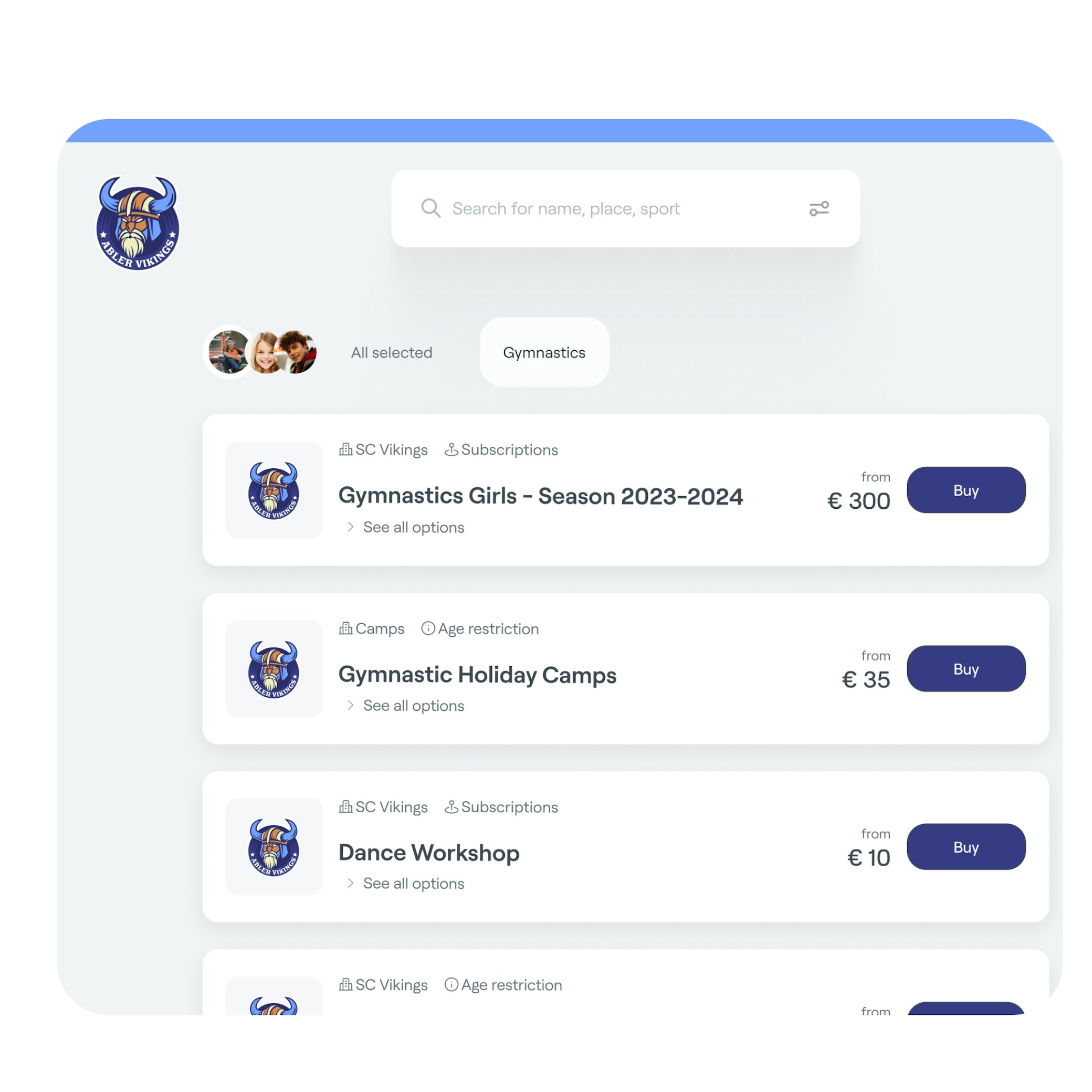 Abler Booking helps gymnastics clubs manage camps, classes, and memberships with ease. Set clear terms, manage waitlists, and offer private registration with full control over pricing.Instalments and discounts give families added flexibility.